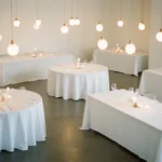 - Espace de base (dîner) : Multipliez votre nombre d’invités par 1,5 (tables rondes) ou 2 (tables rectangulaires). Exemple : 150 personnes x 1,5 m² = 225 m².